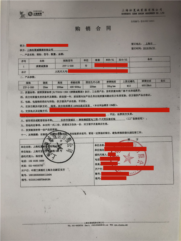 二、長沙市望城區澳海瀾庭配電工程干式變壓器安裝項目-彈簧減震器銷售合同